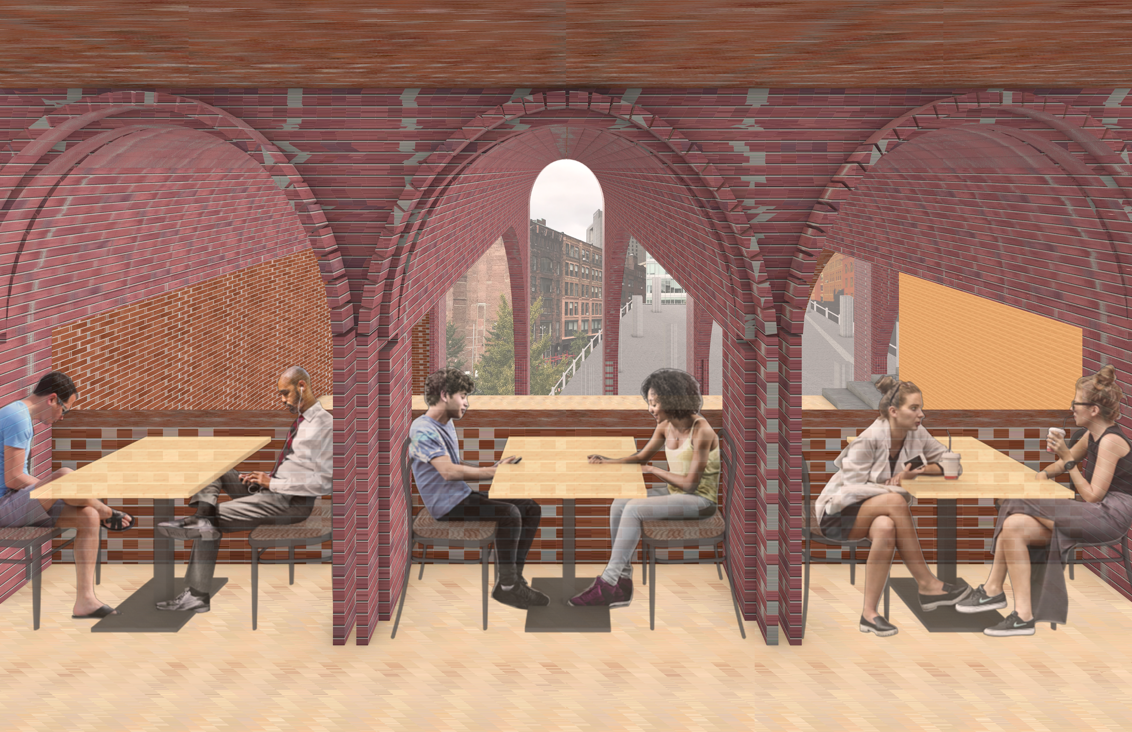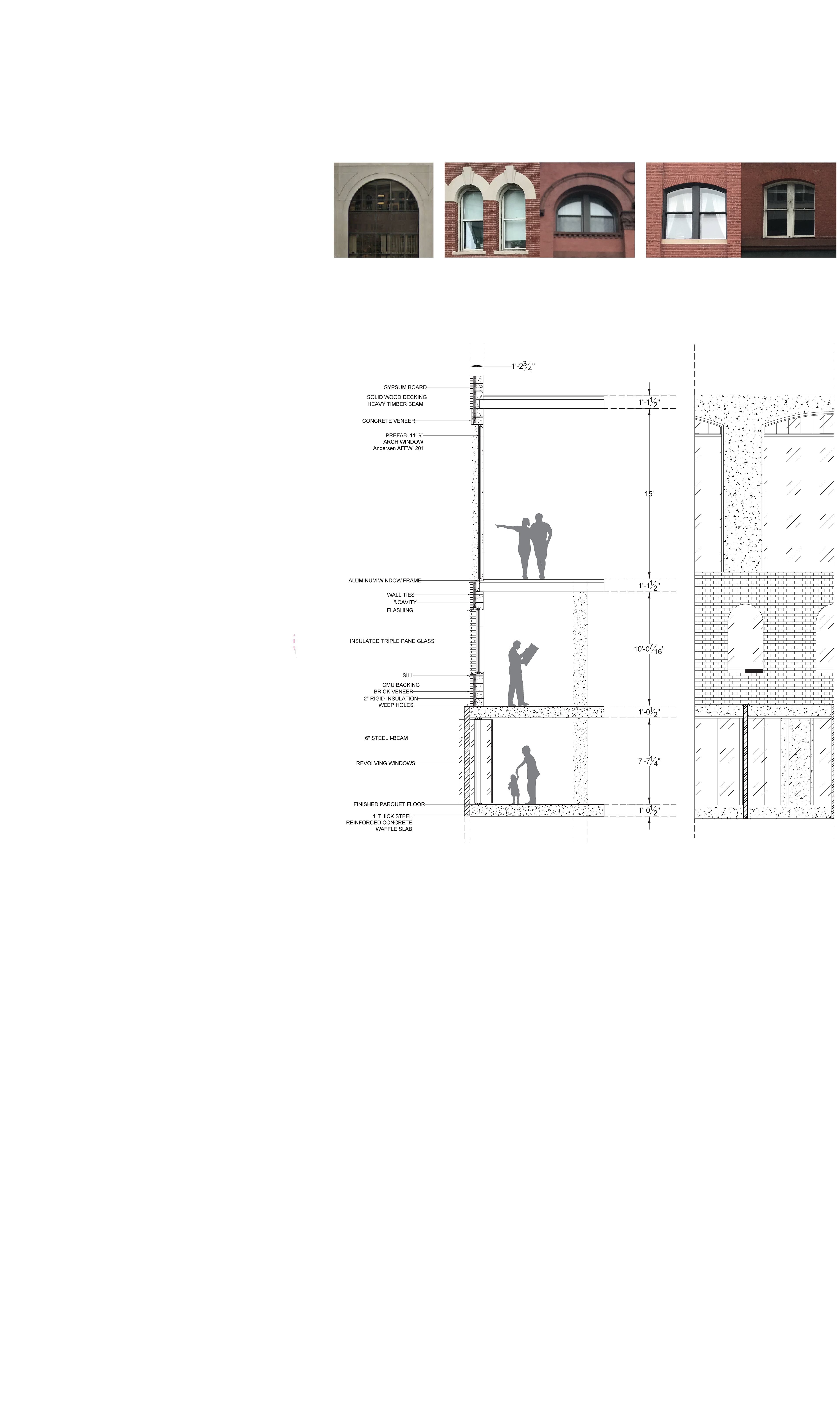 Inspired by the public steel/private brick building typology of the Leather District and Chinatown, the Library utilizes brick and concrete as the prominent building materials and arched forms to mirror the windows of surrounding buildings.