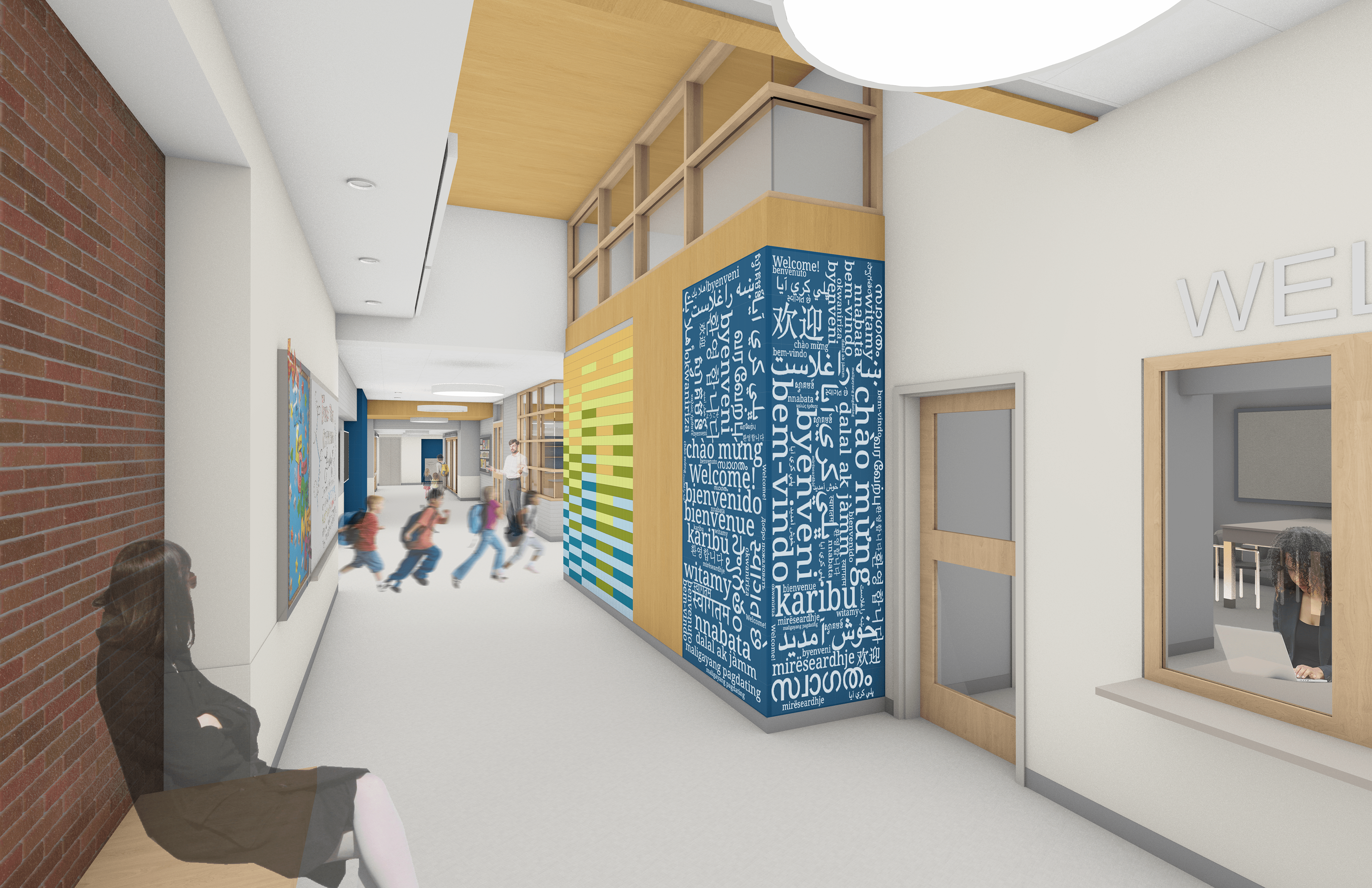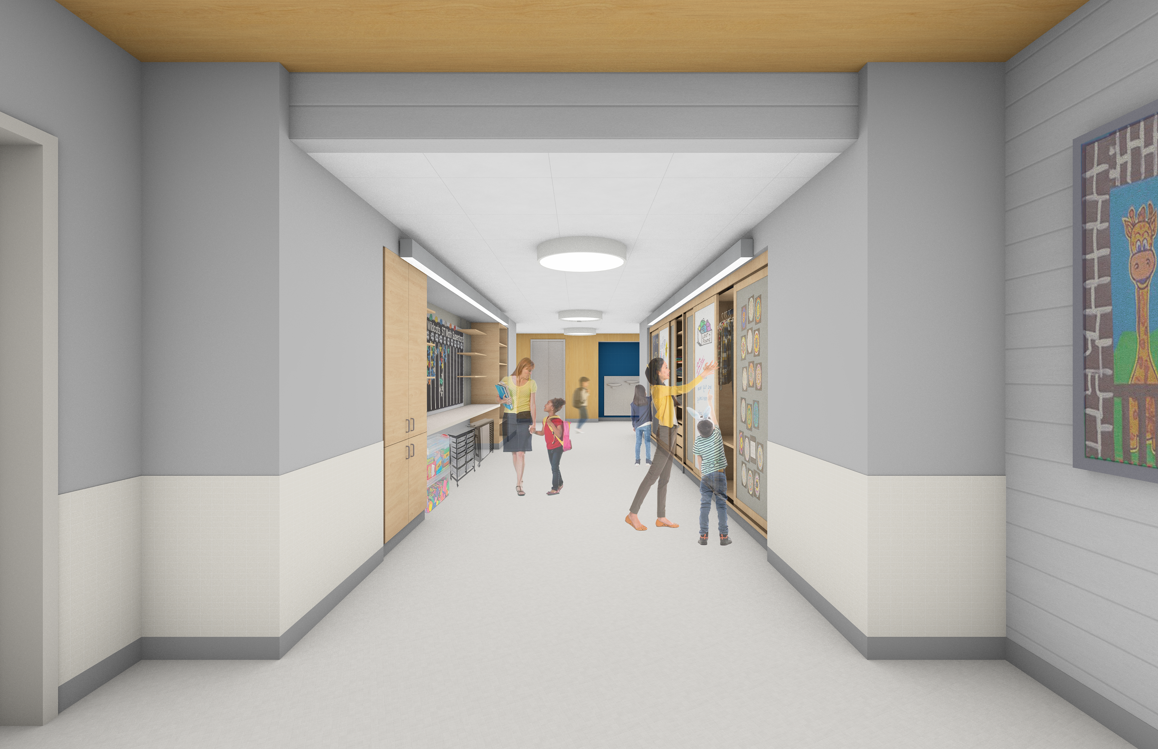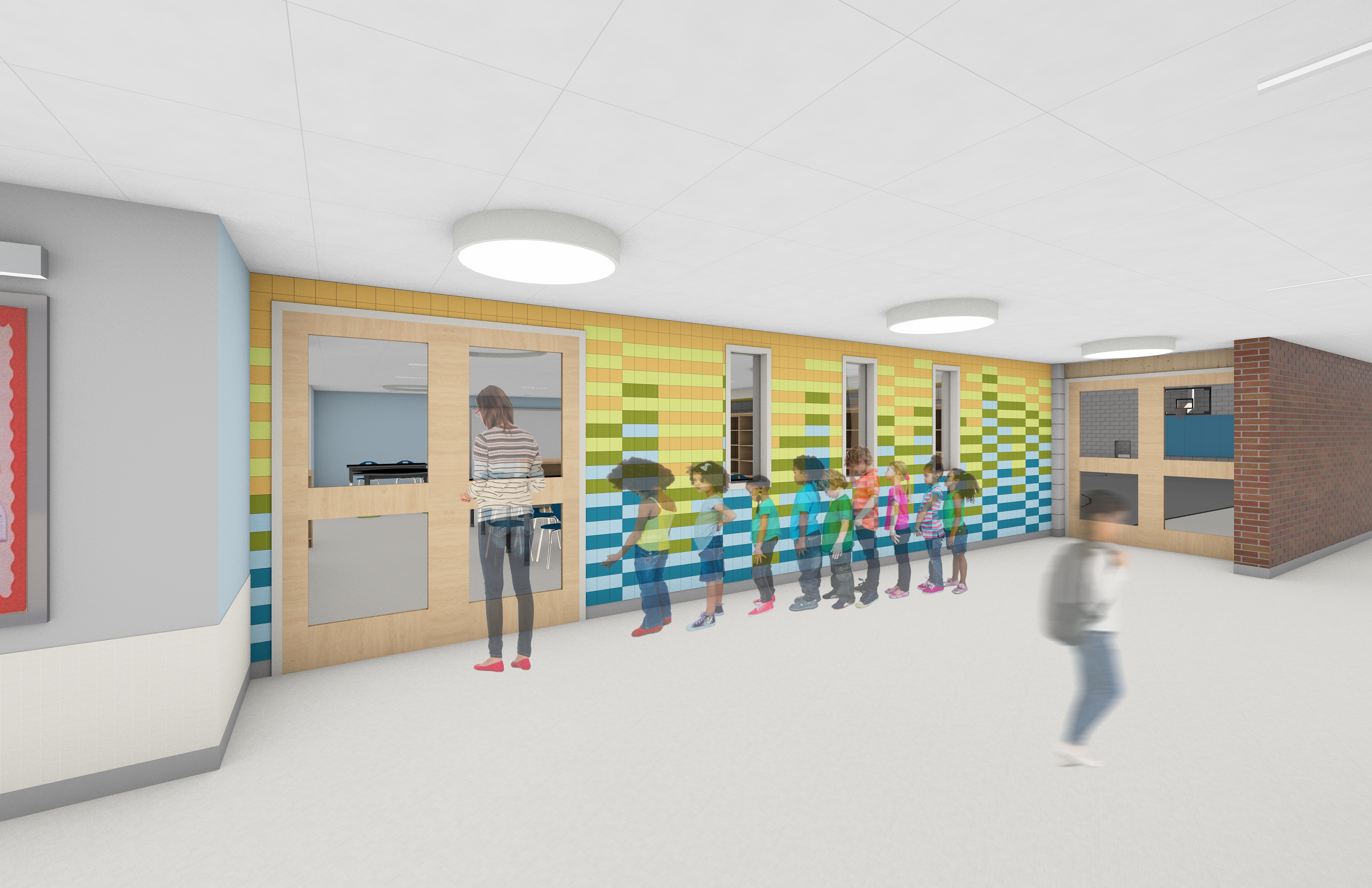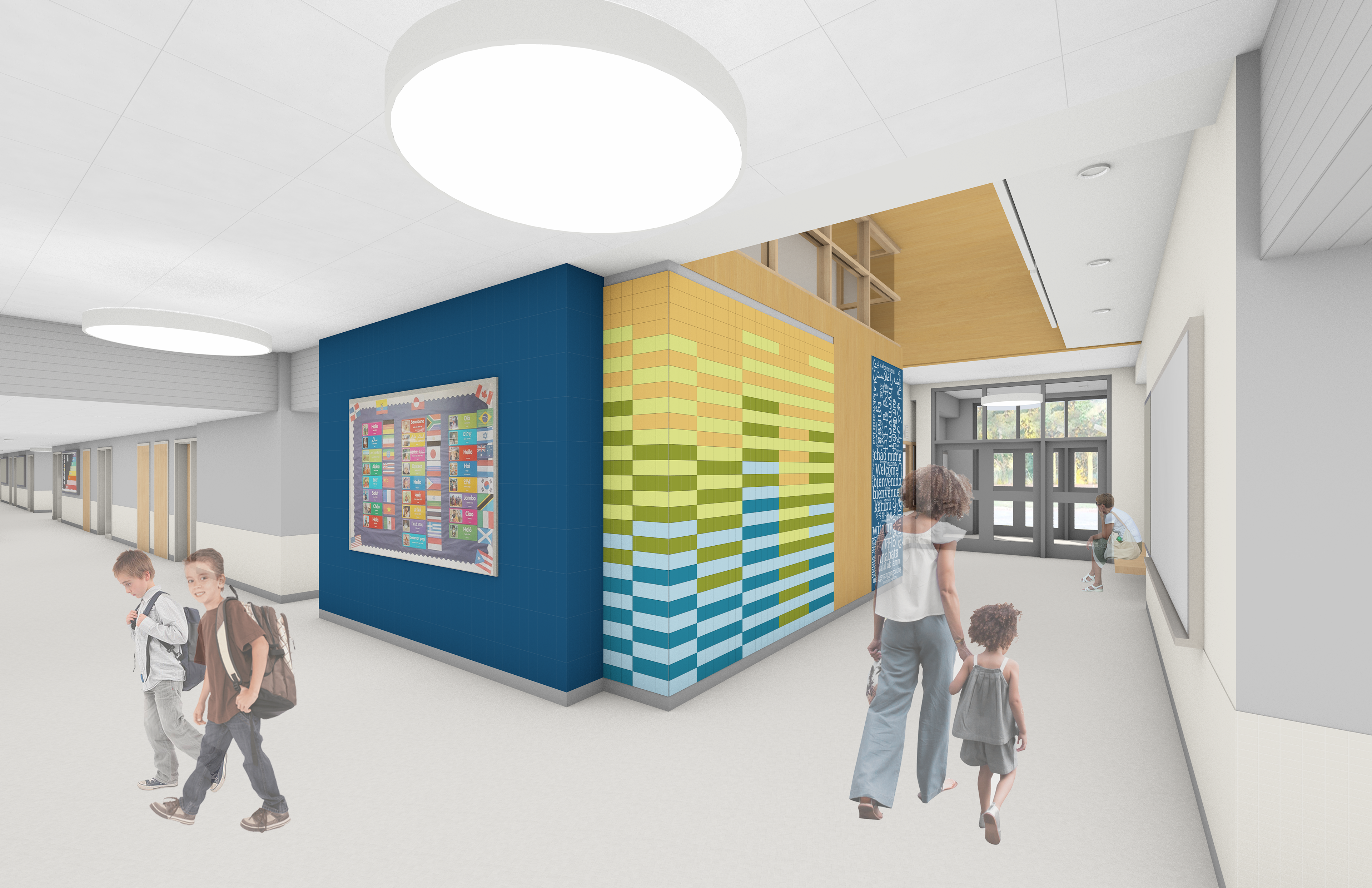 The following images were created by me for DiNisco Design and its clients, in conjunction with other DiNisco team members. The project I contributed most to was the Peabody Welch School - a much-needed renovation of an elementary school in Massachusetts. I worked on the tile patterns, materiality choices, signage, paneling, cabinetry, and furnishings. The renders, bringing life into the spaces they represent, were done by me. The layout of the hallways and rooms, exterior modifications, doors and windows, and other elements were completed by the team at DiNisco.