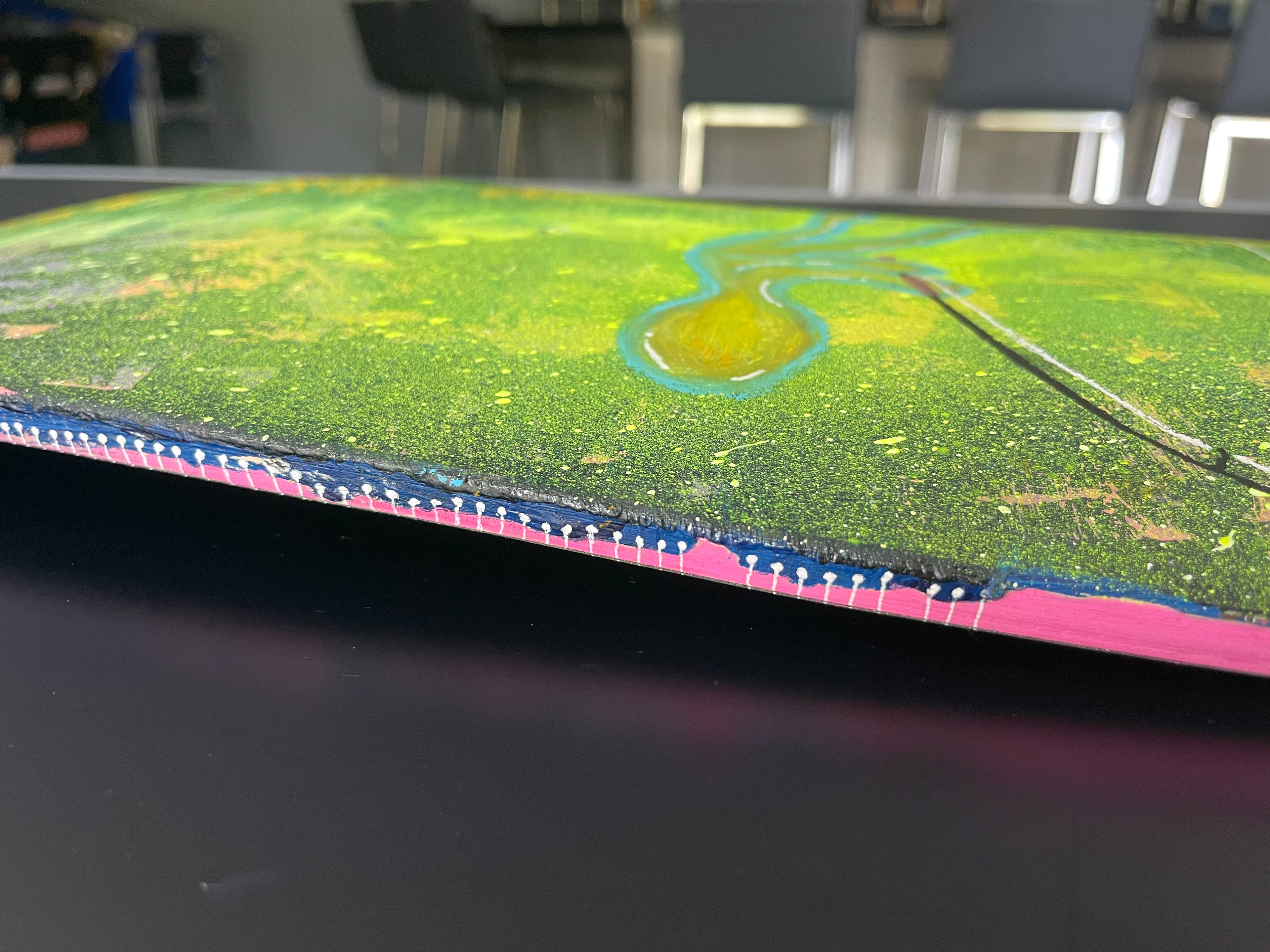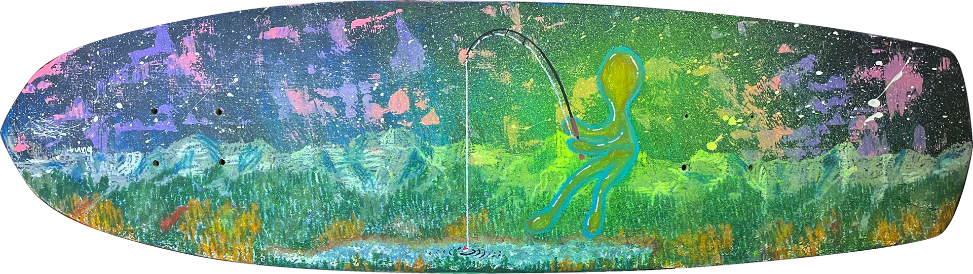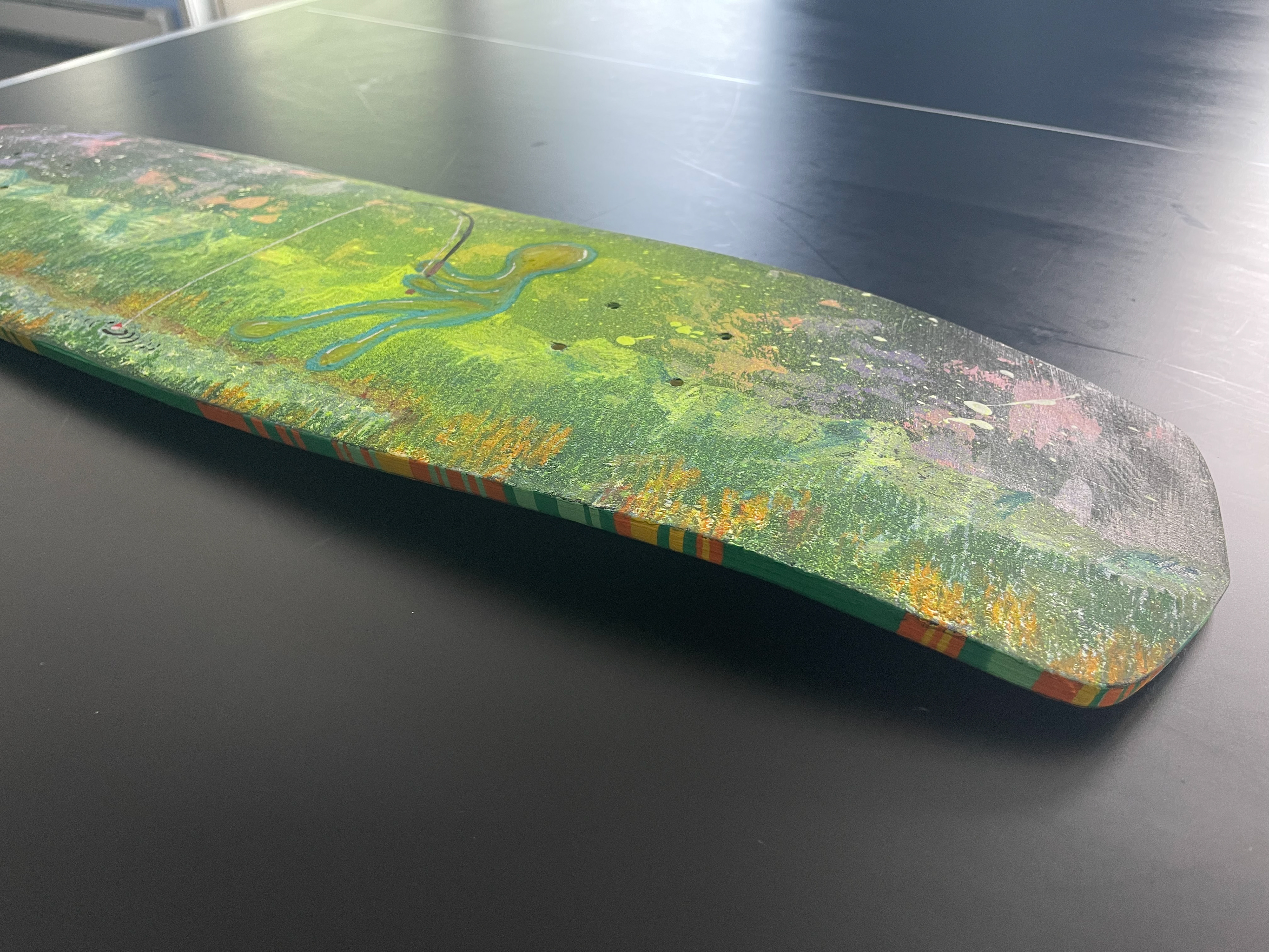 mixed media on a skateboard deck