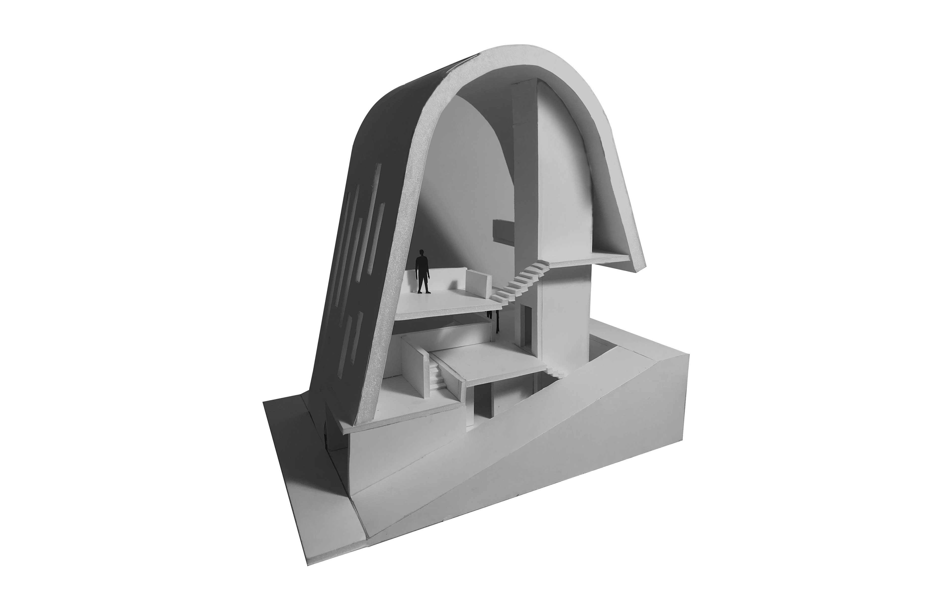Studying Loos's Raumplan tactic, we were given a sloped site adjacent to the street on both sides and asked to design a single-family house using said tactic.