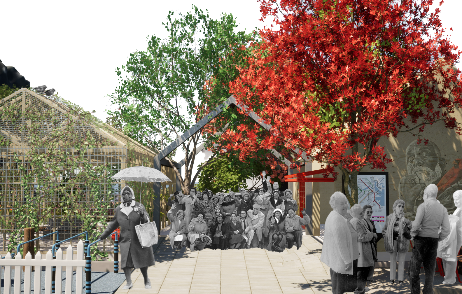 This studio project was designed in collaboration with District 7 City Councilor Tania Fernandes Anderson and many other members of the community in a series of meetings taking place at Boston City Hall. Community input, along with historical research, informed the design of this public space, meant to serve as an example for community use of vacant parcels around Roxbury and Dorchester.